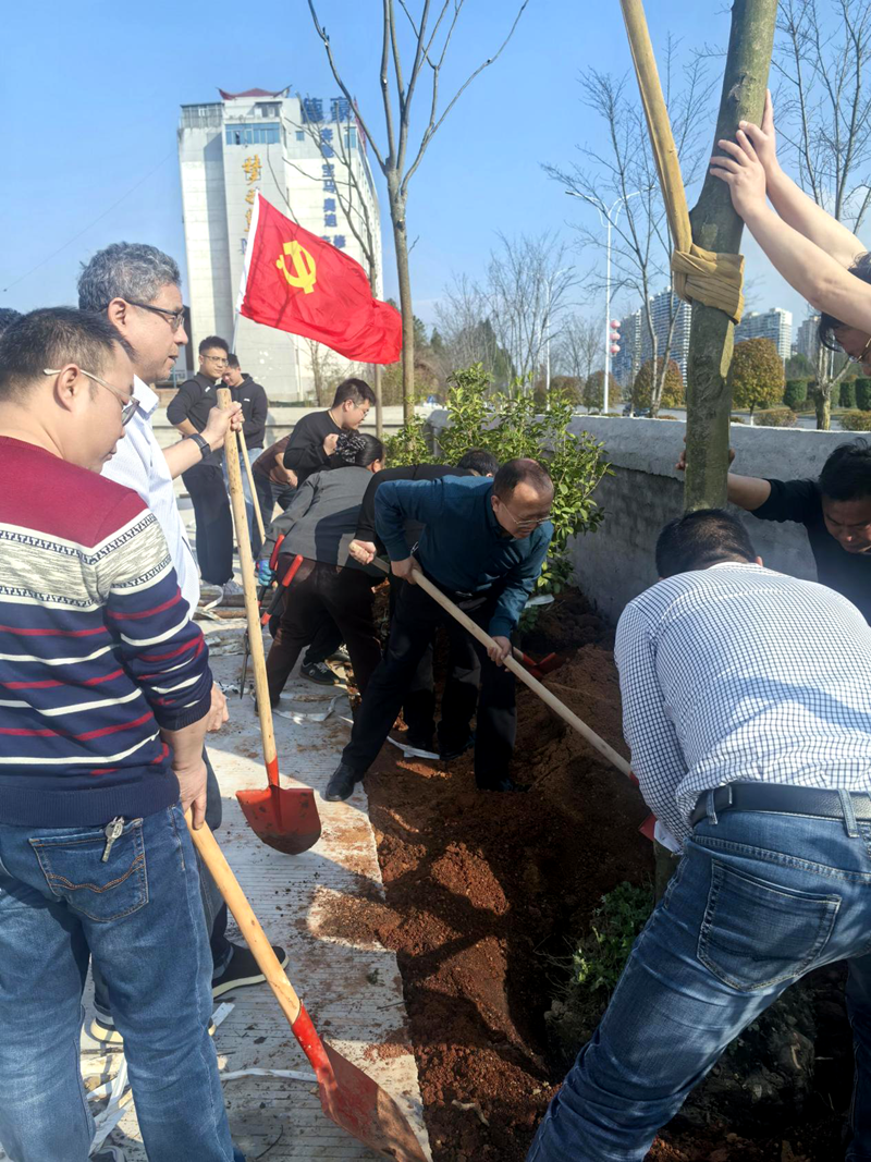 活动现场党旗飘扬,党员干部热情饱满、分工协作,挥锹挖坑、扶苗定植、培土浇水,各个环节衔接有序,现场一派忙碌景象。党员干部带头参与、奋勇争先,用实际行动为停车场增添新绿。植树结束后,党员志愿者同步开展环境整治,清理垃圾杂物、规整停车场地,有效改善区域环境面貌。